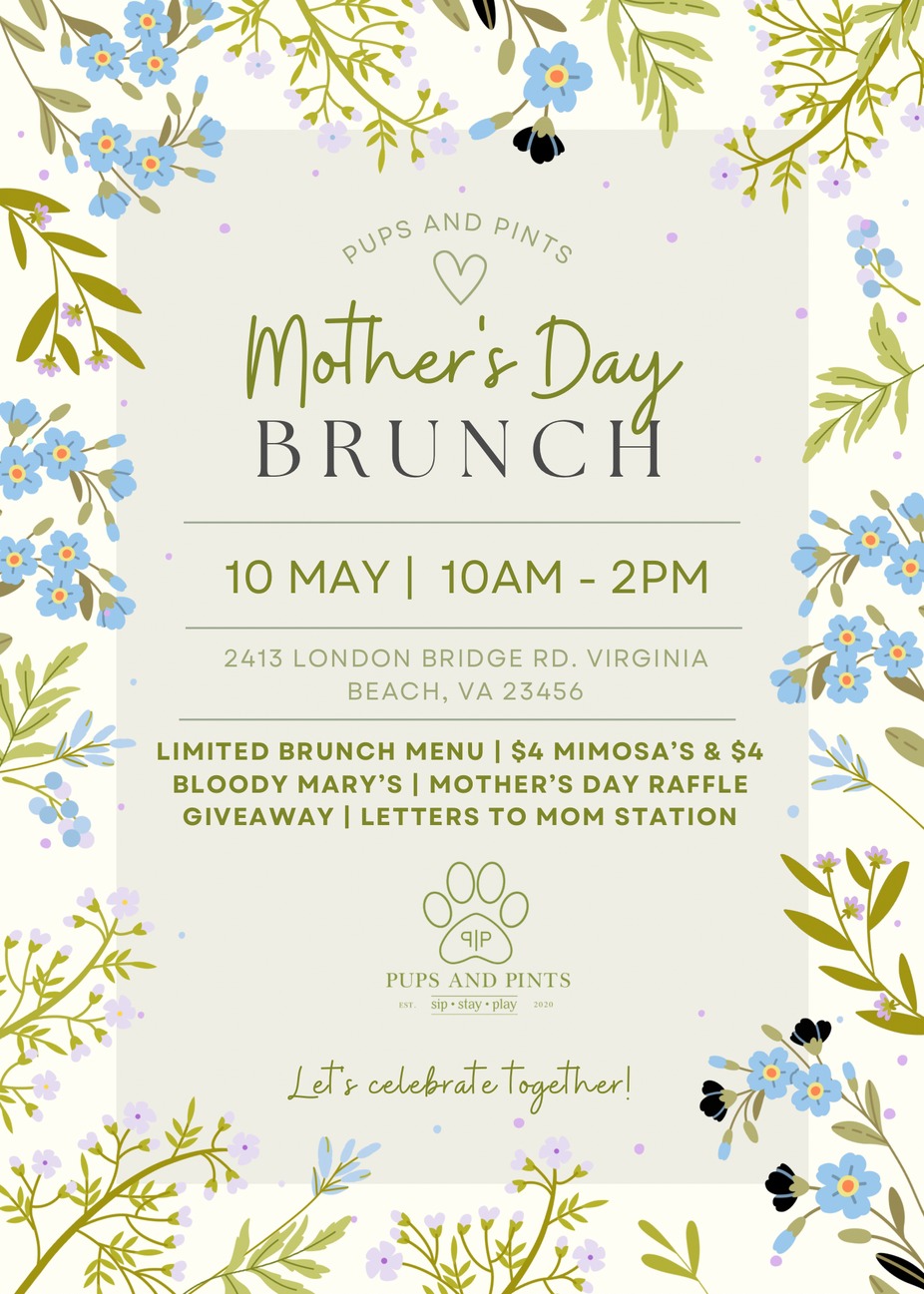 #MothersDayBrunch #DogMomLife #AllMomsWelcome #PupsAndPints #DogMomsOfVB #VirginiaBeachEvents #BrunchWithDogs #SipStayPlay #VBBrunch #DogFriendlyVB #CelebrateMom #BrunchVibes #DogFriendlyDining #MimosasWithMom